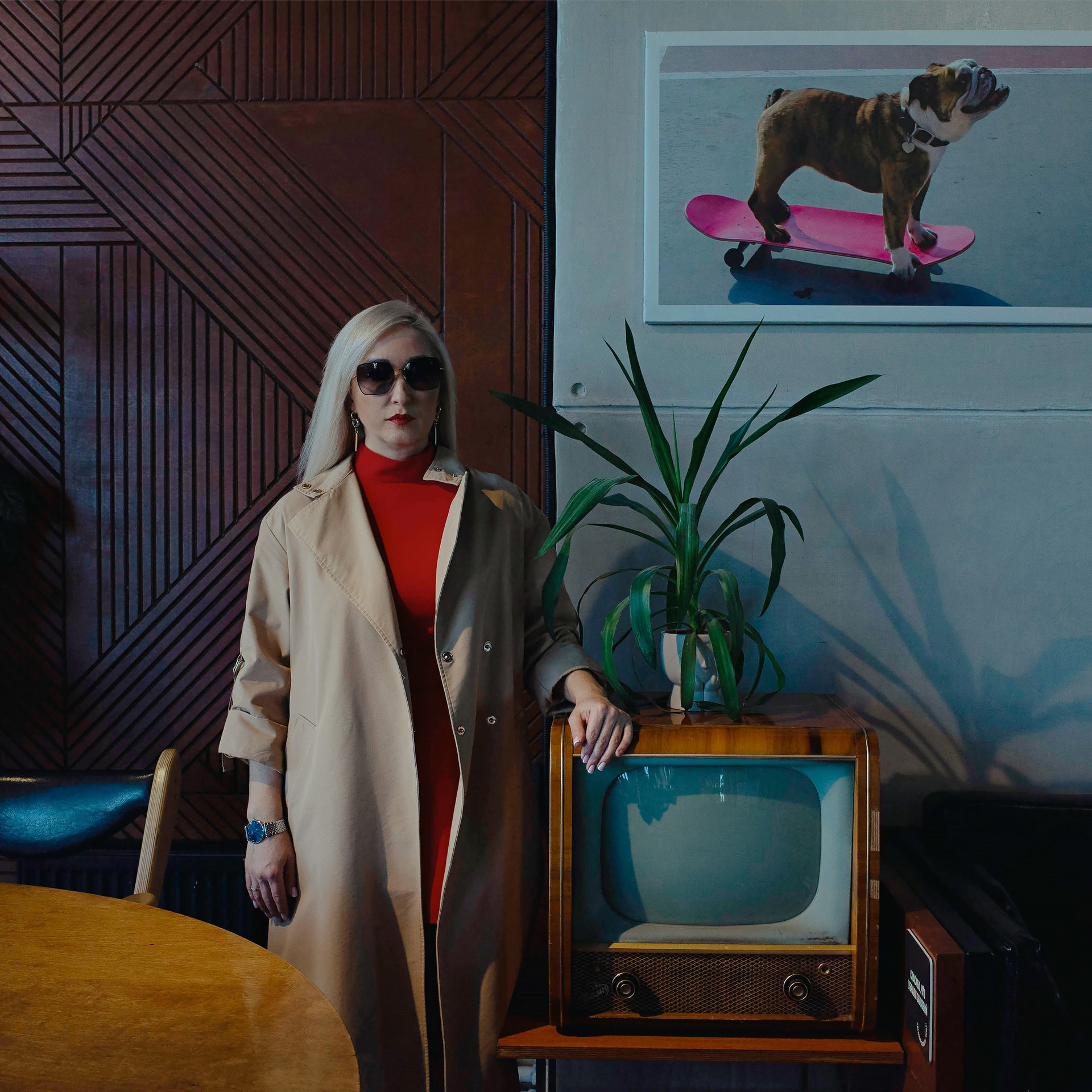 The shoot takes place in a café we choose in advance — one that matches your image and inner state.